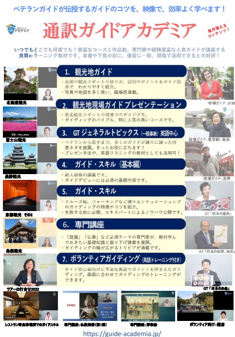 PCやスマホで、いつでもどこでも何度でも学べる通訳ガイド教材です。
