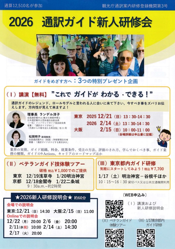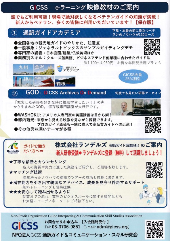 - 他には無い、“通訳ガイドのための異文化コミュニケーションと国際接遇”が学べる。