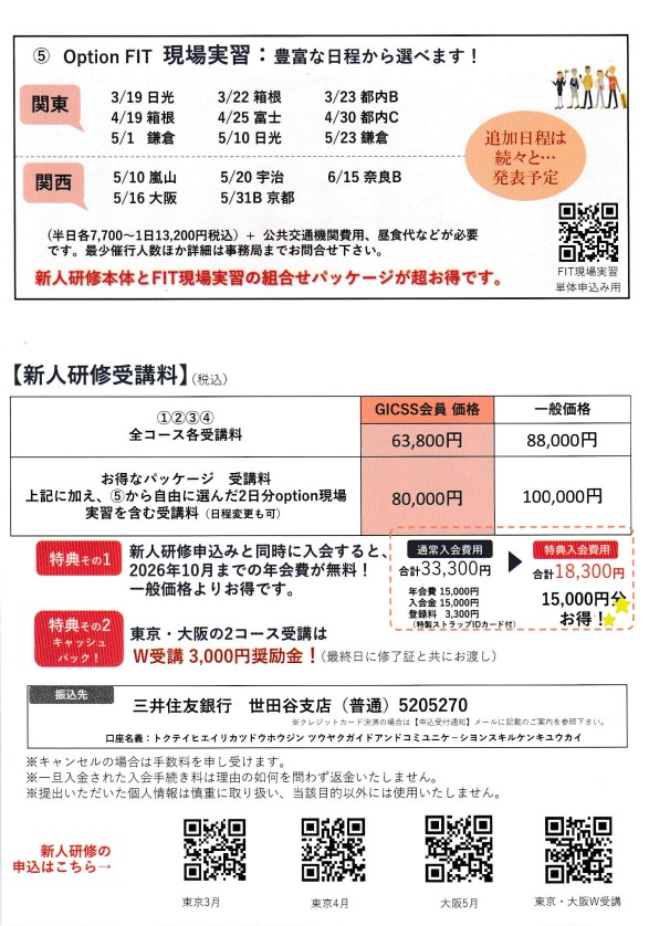 新人研修4日間のみ GICSS会員:63,800円、一般88,000円