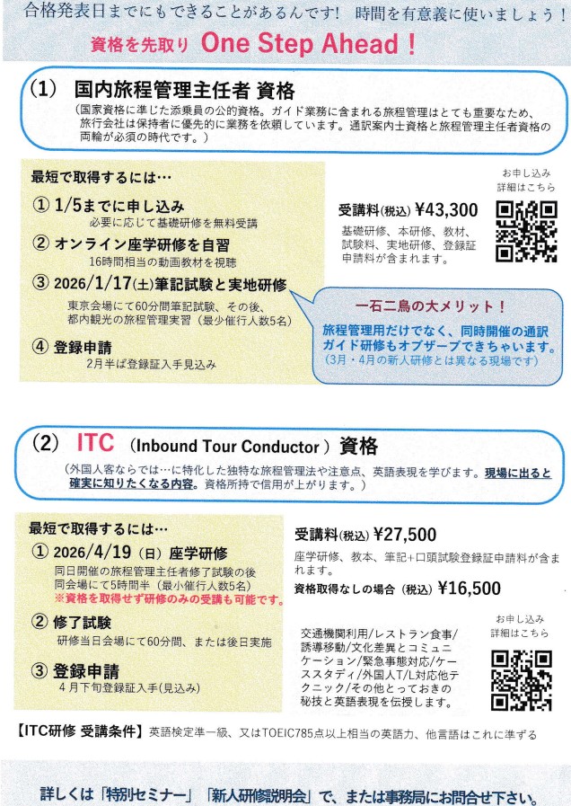 国内旅程管理主任者資格・ ITC資格に関しては、 こちらの動画 をご覧ください。