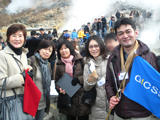 芦ノ湖のほとりにある箱根ホテルでランチの後、海賊船で芦ノ湖クルージングへ。芦ノ湖のユニークな地勢の話から始まり、ゴルフコース、現在活躍中の若手ゴルファー、そして英才教育に夢中な親の話へ、次から次へと湧き出るような楽しい話題にあふれたガイディングに、デッキでの寒さも忘れうっとりすると同時に、いかに先生方がお客様のことを大切に思われているかが伝わってきました。桃源台からロープーウェイで移動した標高1044mの大涌谷では、硫黄煙が噴き上げて実際の火山活動を見ることができます。1個食べると7年長生きすると言われる熱々の黒卵を食べてパワーをもらいました。